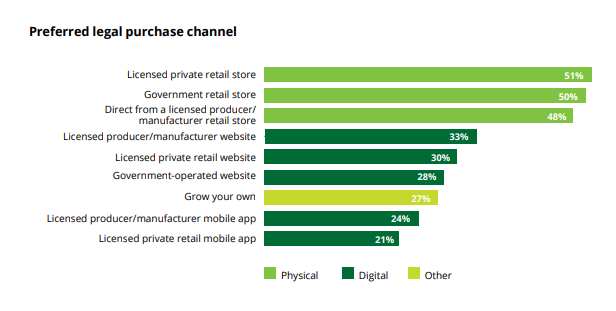What proportion of sales of cannabis are done online?