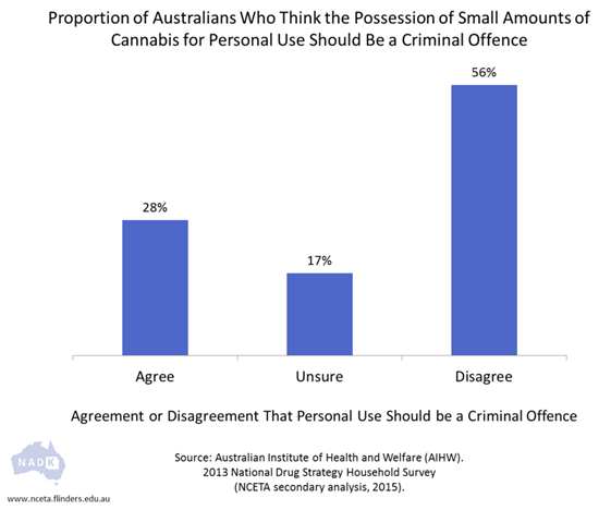 A Graph by the NDSHS showing the support for the decriminalisation of cannabis within the Australian borders. src
