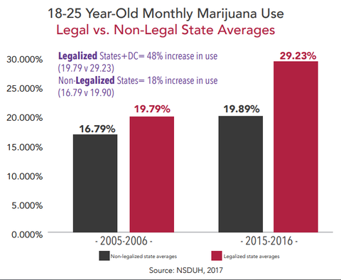 Despite the claims of marijuana-industry lobbyists that loosening the drug policies will not affect its use in the younger population, the data from recognised studies show teens are rapidly increasing their consumption of cannabis in states where it is legal.