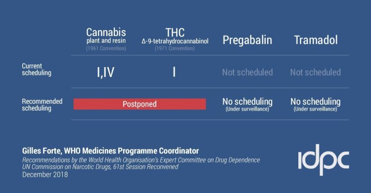 In January, the director general of the World Health Organisation (WHO) recommended cannabis be rescheduled under the UN convention in an effort to aid trade and scientific studies of the drug. While the proposal suggests a number of different rescheduling ranks for different cannabis components, the most significant is the recommendation that CBD products with no more than 0.2 percent of Tetrahydrocannabinol be removed from the controlled substance list altogether. A vote on the matter was scheduled for March, but has since been postponed.