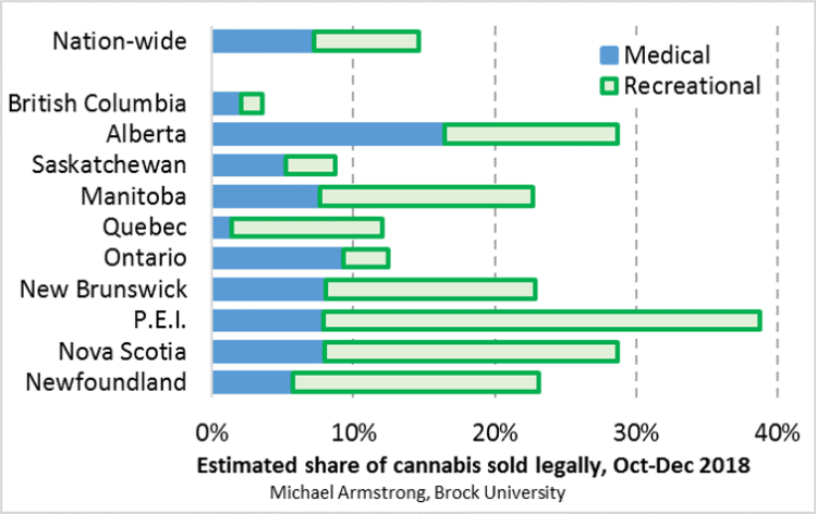 In Canada – where marijuana is legal for medicinal and recreational purposes – the black market garnered a steep 79% of all marijuana sales made in the fourth quarter of 2018. This figure is 11% lower than the black market’s sales in the earlier quarters of the year. This, however, shows that the legal cannabis market still has a long way to go in completely crushing the cannabis black market.