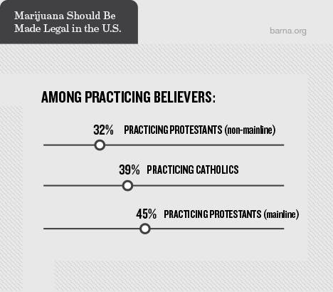 In contrast, most practicing Christians are against cannabis legalisation. Even mainline Protestants, who are more liberal on social issues than Catholics and non-mainline believers, are less likely to say yes to legalisation.